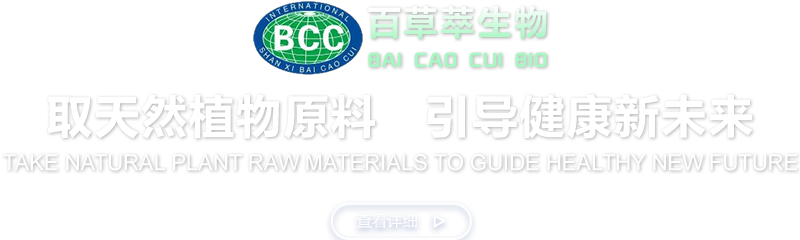 陜西百草萃生物科技有限公司,位于陜西省咸陽市秦都區(qū)濱河西路1號大秦御港城,公司成立于1996年,主要從事天然植物種植、研發(fā)、生產(chǎn)、加工、銷售為一體的高科技企業(yè)。主營醫(yī)藥原料、保健品原料、化妝品原料,精細化工原料。公司致力于人類健康保護事業(yè)“ 以科技為動力,以質(zhì)量求生存” 的本質(zhì),依托陜西高新科技技術(shù)人才和科研優(yōu)勢,已形成多學科、全方位、高層次的技術(shù)管理精英團隊。充分利用秦巴山區(qū)的天然藥物資源,歷經(jīng)多年發(fā)展為打造百草萃生物品牌奠定了基礎(chǔ)。